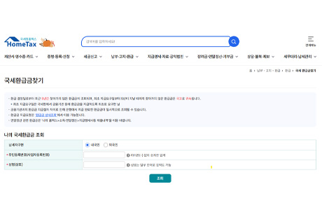 최근 5년간 찾아가지 않은 국세 환급금 내역을 조회할 수 있습니다.