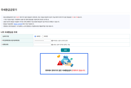 국세 미수령 환급금 조회 서비스와 연계된 민간기업 서비스입니다.